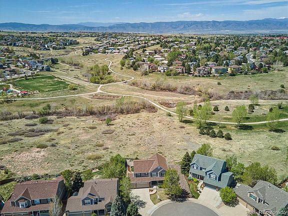 This is the lot you have been waiting for! Coveted location in Heather Hill in a cul-de-sac, backing to open space with gorgeous mountain views! Expansive floor plan has 4000sqft finished living space featuring 5 beds plus main floor office, 4 baths & finished, walk-out basement. BRAND NEW: carpet in whole house, exterior paint, some interior paint including all baseboards, all kitchen appliances & sink, new floor tile in 3 bathrooms. Soaring vaulted ceilings in family room with grand gas fireplace, built-in shelving & cabinets. Notice the refinished hardwoods in the entry, kitchen & breakfast nook plus Plantation shutters throughout! Open, eat-in kitchen has island, double ovens & cooktop, large pantry. Formal living & dining rooms, office (could be 6th bedroom), & powder room complete the main level. Head outside to the balcony (new railing!) to enjoy the stunning views & sizeable yard! Upstairs are 4 bedrooms, 2 baths & convenient laundry room w/folding counter & shelves. Primary Suite boasts more mountain views & vaulted ceiling w/new fan, His & Hers walk-in closets & attached 5-pc bath w/soaking tub. The finished basement offers ample living space including a massive recreation room w/corner fireplace, bedroom, 3/4 bath, bonus space & multiple storage areas! Plenty of room for cars, toys & storage in the oversized 3-car garage. Excellent neighborhood feeding to top rated schools, walk to Valor HS, close to STEM School. Low HOA gets 4 rec centers, pools, tennis, fitness. Miles of trails! Near Town Center, Central Park, new hospital. Short drive to shopping & dining, easy to C470. Don't miss out!
