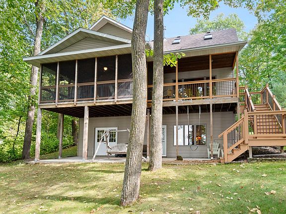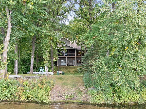 A HIDDEN GEM OF A LAKE: This quality built 3 bedroom 3 bath home sits on a beautifully wooded level lot that instantly makes you relax as a covered porch greets you as you step inside to a captivating west facing lake view. Open floor plan with complete main level living; upstairs includes two beautiful bedrooms, loft space and full bath. Lower level family room complete with bath and a amazing workshop area with double doors to the lake for storage. 40x28 detached garage built in 2012 with heated office space above. 20x12 screened in porch overlooks your beautiful lakeshore on a great recreational and fishing lake located just outside of Cumberland and under 1 1/2 hrs to the Twin Cities. All this AND the home comes almost completely furnished!