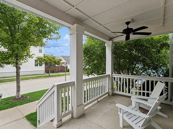 Located in Iowa City’s vibrant Peninsula Neighborhood, this beautiful home offers easy access to parks, Thornberry Dog Park, trails, Iowa River Landing, and UI Health Care’s main campus. A classic front porch, upper-level porch, Romeo and Juliet balcony, and a rear deck that flows into a custom patio with firepit and grill island create inviting outdoor living spaces. Inside, a contemporary open layout connects the kitchen, dining, and living areas. The living room features built-in bookshelves and a gas fireplace. The kitchen is ideal for anyone who loves to cook, with quartz counters, ample storage, and a walk-in pantry with built-in cabinetry, second oven, and coffee bar. A main-floor office or guest room, full bath with shower, and mudroom with drop zone and laundry add function. The spacious primary suite offers balcony access, a large walk-in closet, and a spa-like bath with dual vanities, soaking tub, and tiled shower with dual heads. Upstairs includes two bedrooms and a full bath. The finished lower level has a wet bar, wine room, gas fireplace, bonus space, fifth bedroom, and full guest bath.