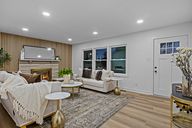 Sleek modern fireplaceContemporary flooringRefined finishesFire pitFinished walk-out basementSpacious family roomSpa-inspired en suite bath