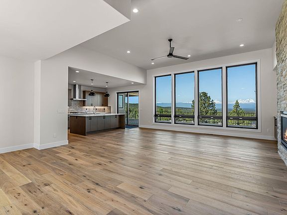 Gorgeous custom home in Eagle Crest Resort is nearing completion! This prime location on the West Ridge offers breathtaking views of the Cascade Mountains and easy access to BLM trails, Cline Buttes trailhead, and the Lakeside Sports Center. The open-concept floor plan features 2955 square feet with two primary en suites; one with a free-standing soaking tub and one with a walk-in shower. An additional guest room, full bath, office, bonus room/tv room, a half bath, and a utility room complete this fantastic single-level floor plan. This home is finished with black framed windows inside and out, hand-troweled walls, solid quartz counters in the kitchen and all bathrooms, and engineered hardwoods everywhere except the bedrooms. 1283 sq ft triple-car garage with three doors and a partially covered west-facing deck. 12 x 15 Sq Ft finished storage room under home.