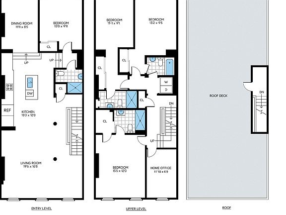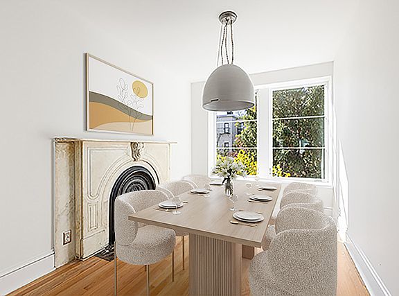 NO FEE!! NO FEE!! Welcome to 993 Lorimer #2, a 2350 sq ft triplex nestled in a prime Greenpoint/Williamsburg location, one block to vibrant McCarren park and Bedford Avenue. The G train is only one block away, and the L train, excellent bus service, two ferry terminals and CitiBikes provide easy access to the rest of the city and beyond. This triplex blends history and contemporary and has been impeccably restored and renovated to perfection. Enjoy chic townhouse living with an amazing private roof deck with gorgeous Manhattan views, a sprawling four-bedroom + home office, four-bathrooms, and in unit washer/dryer. Heading up the stoop you will notice a striking blue door which is the private entry to this beautiful triplex. Upon entering you will find a newly renovated home where you will discover a grand living space with beautiful decorative fireplaces with restored original mantles, crown moldings, high ceilings, hardwood floors, and oversized windows framing gorgeous outdoor views. The first floor of your spacious triplex features a modern chef's kitchen filled with abundant cabinet space, a center island and upscale brand new stainless steel appliances including a gas stove and dishwasher. Off the kitchen there is a separate dining room with charming decorative fireplace overlooking the tree filled backyard. There is also an expansive open-plan living room with another decorative fireplace and beautiful pillars framing the space. Also on this floor is a bedroom and full bathroom. The second floor of the expansive triplex offers an inviting and sun filled additional 3 bedrooms, all able to accommodate queen sized beds, 3 full bathrooms, and a home office. The spacious and quiet primary bedroom can easily hold a king sized bed and features a decorative fireplace and an en-suite bathroom with walk in shower. The top floor has a large private roof deck with Manhattan skyline and Brooklyn views. With plenty of space to enjoy the sunshine and entertain. This triplex has been meticulously renovated and includes high-end finishes and fixtures throughout the stunning interiors and has been updated with central A/C and full sized washer/dryer in unit. Heat is included in rent. In this ideal location near the border of Greenpoint and Williamsburg, you're surrounded by fantastic shopping, dining, concert and nightlife venues. Enjoy extraordinary outdoor space and recreation along the revitalized Greenpoint and Williamsburg waterfronts, while McCarren Park offers a pool, track, tennis and green market just one block south.