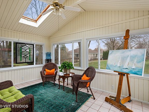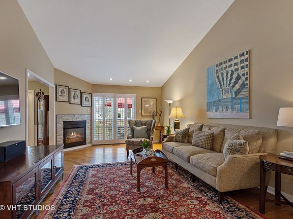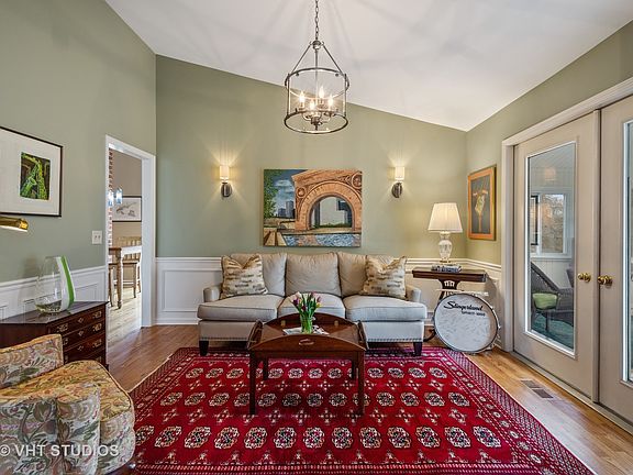 Charming Chippendale Ranch w/contemporary flair. Vaulted ceilings & hardwood floors throughout main level. Large updated kitchen w/walk-in pantry & eating area. Pretty dining room w/brick fireplace. Living room features wainscoting & French doors to light & bright heated sunroom offering white paneled walls/ceiling. Plantation shutters & gas heatilator fireplace w/stone surround warm up the family room. Spacious master features vaulted ceiling, his & hers closets, cozy sitting room & ensuite bath w/walk-in shower & heated floors. The 2 additional bedrooms share hallway bath. 1st floor powder room & laundry. Finished basement office & rec room w/new carpet & paint, large sealed crawl space & ample storage. 2-car garage w/professionally finished floor. Enjoy maintenance free lifestyle w/lawn sprinkler system & HOA covering lawn care & snow removal. Close to downtown Barrington shopping & dining, Metra, Citizen's park, Library, Langendorf Park & A+ Barrington Schools.