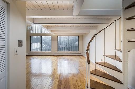 Mill Brook Condominium! Two bedroom, two-level, loft style corner unit with open floor plan, NEST thermostat, Google Home Mini, wall mounted USB connector on some outlets,1st floor half bath, kitchen with updated cabinets, spacious living room/dining room feature hardwood floors with stunning floor to ceiling windows to let in tons of light. Freshly painted spiral staircase to second floor includes two bedrooms, full bath and linen closet. Entryway, hallways and unit doors updated in 2016. Set back from Massachusetts Ave, with an easy walk to public transportation to Alewife and Boston, grocery stores, shops, restaurants, and Minuteman Bike-way. Building provides deeded parking space in garage, additional storage locker, intercom security, laundry facilities and parking. CONDO FEE INCLUDES HEAT & HOT WATER! Pet friendly too!