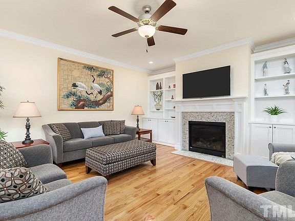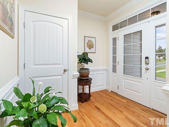 THROW AWAY THE MOWER! HOA takes care of lawn. Minutes to Historic Downtown Apex. Move-in ready, flawless th w/owner's suite on MAIN level & 2 walk-in closets! Hardwoods throughout. Spend mornings on the spacious screened porch overlooking a private yard. Upstairs has 2 spacious bedrooms w/walk-in closets, office nook/loft and tons of storage. Over-sized garage has epoxy floor & workspace. Don't miss the 10ft high crawlspace. Community Pool. Walk to park/pond, 2 mins to Golf Course, Rt 1. A MUST SEE!