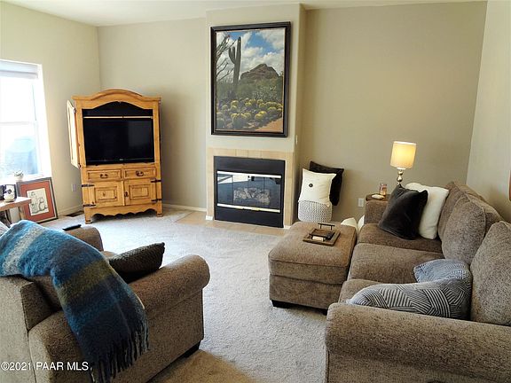 A Golfers paradise you can enjoy full time or lock 'n leave as you please! 2004 build, Spacious Townhome with lots of natural light, walk out deck with awesome Sunsets, Bradshaw Mountain & Blue Sky views, Open Living area, Gas fireplace, Remote controlled blinds, tasteful color palette, dining area off kitchen, Full size W/D and Refrig-freezer included, lg downstairs flex-bedroom with 1/2 bathroom and storage under stairs. Garage is Extra Deep with lg Storage Closet, Owner has prepaid reserve for NEW ROOF to be completed soon. HOA fees cover exterior bdg maintenance, Golf & Restaurant are public, POA Club Amens: outdoor pool, fitness ctr, tennis & basketball are a separate membership. HURRY this rare offering will sell fast!