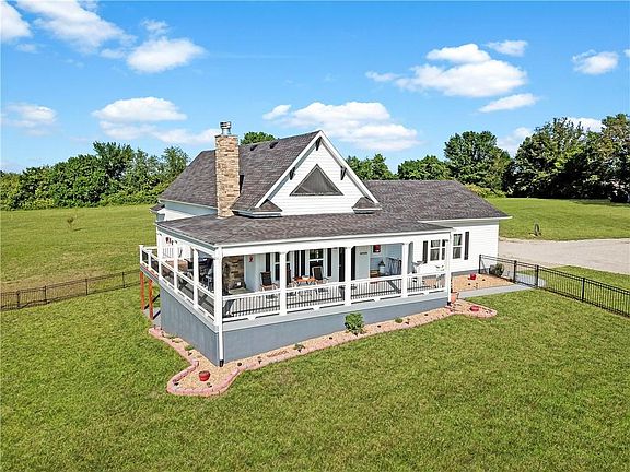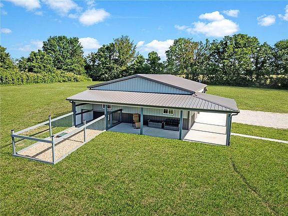 Surround yourself with the beauty of nature at this 8+ acre modern farmhouse retreat on expansive acreage! Newly constructed ranch home sitting on a walk-out basement bursting at the seams with contemporary luxury + rustic charm. The main floor of this home is all one level - an open kitchen + living room is well designed with top-of-the-line appliances including 220 v outlets for European appliances! The primary suite has 12 foot ceilings, a sliding door out to your private deck, and consists of a spa-like ensuite bathroom and walk-in closet. Additional bedrooms offer comfort and versatility, ensuring ample space for family or guests. Custom features galore adorn this home including beautiful hickory hardwood flooring, custom cabinetry from floor to ceiling, boutique lighting, vaulted ceilings, custom wood beams, a wood burning fireplace as well as an electric fireplace, a wraparound concrete front porch, two decks, granite countertops, a newly built shop w/ attached covered porch + dog run, and the most spacious black metal fence enclosure! The 60x30 shop provides ample storage space for all your outdoor equipment and also has a separate room efficiently heated & cooled for all season enjoyment. Owners have gone above and beyond with maintaining and improving this property - inside the utility area you will find a radon mitigation system as a precaution, a full home filtration system, water softener, and sump pump. The home sits atop luscious landscapes with both usable grasslands + a stocked pond! This is so conveniently located right off HWY 50 - the perfect blend of seclusion and convenience. You will want to see this property that truly has it all.