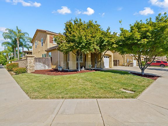 This spacious 5-bedroom, 3-bath corner lot home offers a well-designed layout with thoughtful touches throughout. The formal living and dining areas are ideal for entertaining, while the open-concept kitchen and family room create a warm, everyday gathering space. The kitchen features a built-in gas range, pantry, center island with breakfast bar, and ample cabinetry. Plantation shutters add a classic touch, and a cozy fireplace anchors the family room. A downstairs guest bedroom and full bath — conveniently located off the family room — offer privacy for visitors or extended family. Upstairs, a versatile loft, three additional bedrooms, guest bath, and laundry room provide functional comfort. The primary suite is a true standout with his-and-her closets, a private balcony, dual sinks, a built-in vanity, step-in shower, and jetted tub. Outside, enjoy a covered patio perfect for relaxing or entertaining. A 3-car garage completes the package, offering plenty of room for storage and parking.