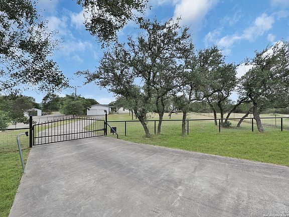 Charming One-Story Home on 5 Acres with River Access. Discover the perfect blend of comfort, space, and country living in this beautiful one-story home nestled on 5 acres in Comal ISD. This spacious property offers 4 bedrooms plus a dedicated office, ideal for remote work. Inside, enjoy high ceilings and an open layout that creates an inviting, airy atmosphere. Step outside to a large, screened-in covered patio-perfect for relaxing or entertaining-connected by a breezeway to a detached two-car garage. The property features a private gated entrance, a well, and a septic system. Bring your animals-horses, chickens, sheep, and even a mother-in-law! Very few restrictions give you the freedom to live your way. Additional perks include access to the Guadalupe River, use of 10 RV sites in the private community park, and proximity to convenient shopping like Walmart and H-E-B.