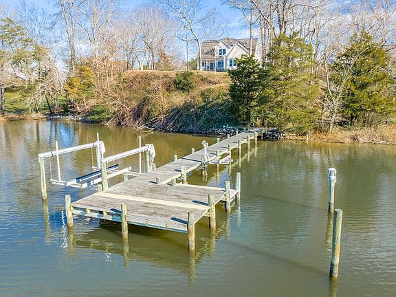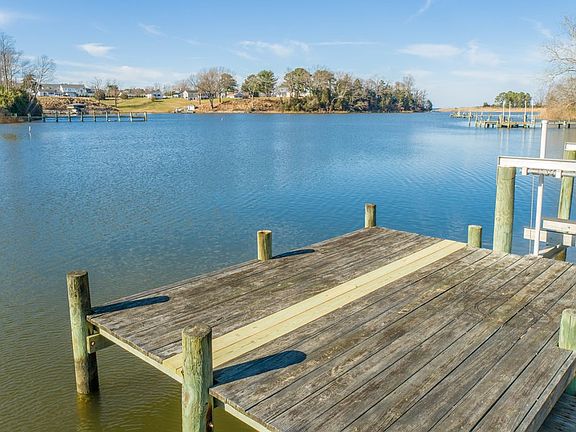 Charming waterfront custom home that has been meticulously maintained. Located in a highly respected waterfront community, the home consists of 3 bedrooms, 2.5 baths and a very large bonus area that could be used for playroom/offices...Large master suite on 1st floor, nicely updated kitchen, and open floor plan. Beautiful water views from almost every room. Situated on just under 2 acres, there is tons of room for boat storage and water toys. There is a well-done pier with 7000 lb. boat lift, water and electric. Protected shoreline and NO Flood Zone, but easy gentle slope to water. Additional features include Andersen windows and doors, paved patio, SunSetter retractable awning on rear porch, which is motorized by remote control and wind sensor, huge unfinished basement with sliding glass door to fenced courtyard area on side of house... 2 zone heat pumps with propane backup, Aprilaire Space-Gard air filters, Aprilaire humidifier, 7 kw back up generator and deep artesian well. Atlantic Broadband high-speed internet and cable tv service the house. ADT security system installed.
