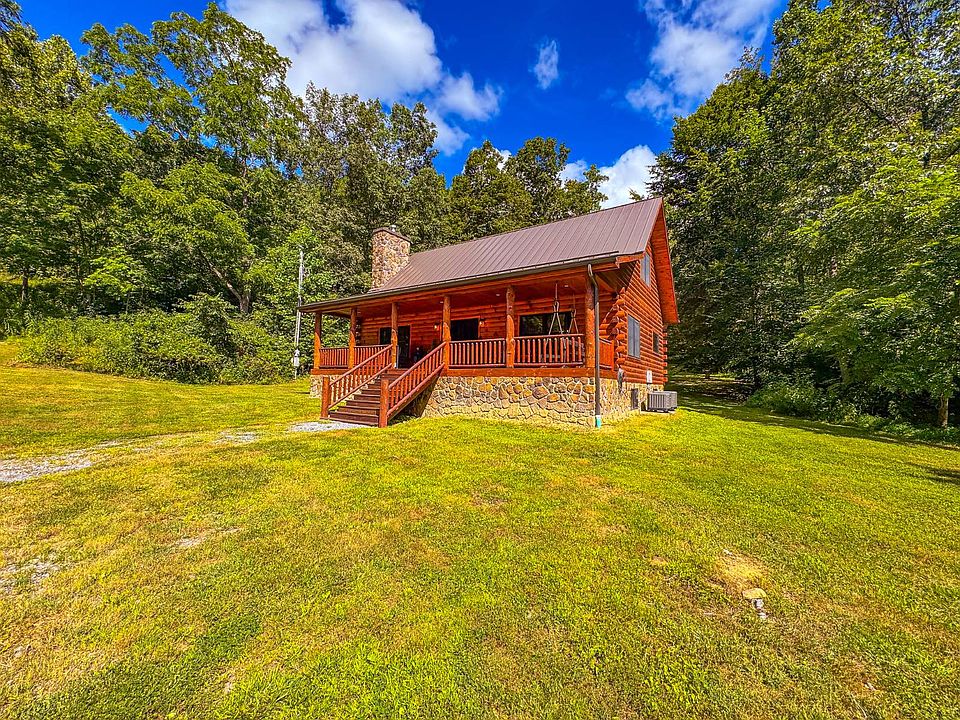 Welcome to a truly exceptional 51-acre retreat in the heart of Braxton County, where modern luxury meets rustic charm. This private estate features a beautifully crafted 2024 custom log home, designed for both comfort and style. Inside, you'll find tongue-and-groove pine walls throughout, creating a warm and inviting atmosphere. The home offers three cozy bedrooms, each adorned with handcrafted Amish-made furniture. The main level boasts a spacious kitchen with hickory cabinets, granite countertops, and modern appliances, perfect for both everyday living and entertaining. The living room centers around a stunning stone fireplace, offering the perfect space to relax after a day outdoors. The primary bathroom is a true sanctuary, featuring a clawfoot soaking tub, a luxurious 3x5 tiled shower with six water inputs, and double sinks. A fully finished basement with a family room to host or just relax in front of a cozy stove, as well as office space for people looking to work remotely. Outdoor living is just as impressive, with an 8x40 covered front porch ideal for peaceful mornings and wildlife watching, and an 18x40 back porch built for gatherings and celebrations. This home is equipped with a standing seam metal roof, two HVAC units, and an instant hot water system, ensuring year-round comfort and efficiency. Surrounded by rolling hills, mature woods, and abundant wildlife, this property is a hunter's paradise with opportunities for deer, turkey, squirrel, and bear. Whether you're enjoying scenic walks, hosting outdoor adventures, or simply taking in the serenity, this one-of-a-kind property offers the perfect blend of luxury living and country lifestyle.
