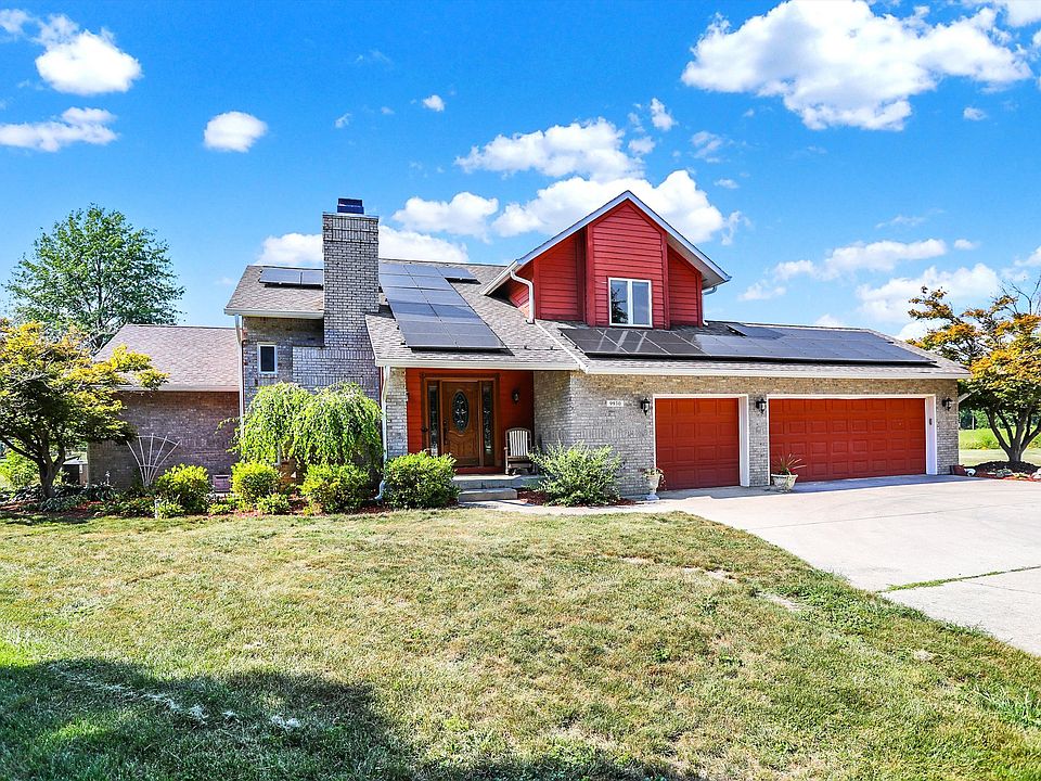 Beautiful Custom Home on nearly a 1 ACRE homesite! COMPLETELY UPDATED THROUGHOUT! The spacious main level features gorgeous hickory hardwood flooring, a living room with soaring two-story ceiling & fireplace, dining room, fully equipped gourmet kitchen w/SS appliances, warming drawer, granite counters, glass-tiled back splash & large center island w/ bar seating + a morning room! The HUGE great rm offers a soaring ceiling, custom wet bar, fireplace, skylights, a billiards area, access to an office, full bathroom & outdoor entertainment space! The main level primary suite features a vaulted ceiling, WI closet, access to a rear patio & a luxurious spa bathroom w/tile WI shower, dual vanities & tile flooring! The main level also includes a spacious laundry room, mud room & a half bathroom! The upper level includes two large bedrooms, a loft area & hallway full bathroom! You will love the spacious backyard & patio, perfect for entertaining! The 4+ garage offers room for vehicles, garden & lawn equipment & more! The circular driveway is a perfect custom touch! The owner also invested in solar power, helping keep the electric bill very reasonable! Between the solar power savings and the home being on well & septic, your utility bills will make you smile! The location of this property is fantastic, with easy access to I-69, shopping, dining, retail, schools, churches, Geist Reservoir, Downtown Indy & more! Award-winning HSE Schools!