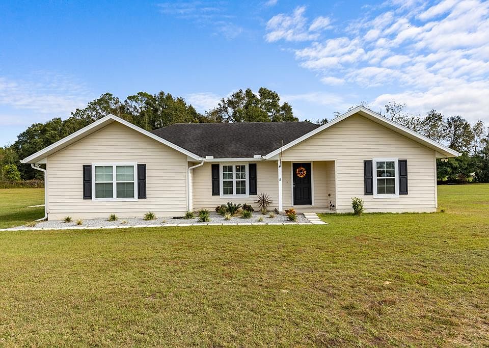 Nestled on 1.8 acres, this 3-bedroom, 2-bathroom home offers the perfect blend of modern comfort and rustic charm. Located in the heart of Trenton. With an open floor plan and modern kitchen, its perfect for entertaining. Comes with three generously sized bedrooms, including a master suite with an en-suite bathroom for added privacy. Outside, enjoy peaceful mornings or host gatherings on your expansive 1.8-acre lot, with room for gardening, pets, or future projects. It also has installed a 30 amp power/ water connections for those with Rv's. Property is close to town, a short drive to the river and springs, and just a 30 minute drive to Gainesville.