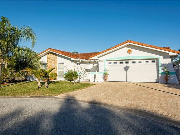 WATERFRONT, DIRECT ACCESS TO GULF OF MEXICO, Private, tropical setting, pool home. Located at the end of cul-de-sac with over 120' of corner canal waterfront parcel. Spacious living room with fireplace overlooks screened pool area and views of canal waterfront. Double Hammock Lagoon in "Werner-Boyce Salt Springs State Park" is the "forever" buffer directly across home's canal providing tranquil conservation views. Exterior features wrap around porch areas, screened pool, multiple sitting areas for outdoor furniture space, boating activities, wood dock, floating dock, boat davit lifts. Well maintained by current owners, this home has a resort style, vacation feel inside and out! Interior features brilliant ceramic tile throughout, meticulously painted, wood burning fireplace, multi-purpose room, split bedroom plan, formal dining room, newer appliances chef's kitchen, granite counters, open spacious kitchen/family room combo, open water views. Master Bedroom has walk-in closet, Master Bathroom includes Spa Hydro Massage Tub. Second bedroom is oversized and split from Master Suite. Two vehicle garage is attached with exterior access door for easy access to side and rear of home. Minutes to Pinellas County Beaches.