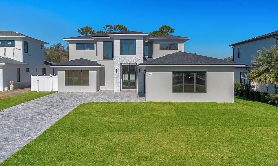 One or more photo(s) has been virtually staged. Located within the sought-after Southwest Orange County, this new construction 5-bedroom, 4.5-bathroom, double master, contemporarydesigned home is move-in ready! As you walk through the glass french doors, you're welcomed with wide-plank light oak hardwood flooring and a modern staircase with glass railing. Your eyes are immediately drawn to the views of your custom pool, large backyard, outdoor kitchen, and open entertainment space. Truly no wasted space with its open dining and living area located right off the chef's kitchen. The spacious eat-in kitchen features premium Wolf and Subzero appliances, a large elegant island, quartz counters, soft-close dovetail cabinets, double ovens, a wine fridge, and a dry bar with open shelving and a dual coffee/espresso machine. The sleek electric fireplace provides a cozy feel to the spacious living room with 10 ft ceilings overlooking the pool. The first-floor master retreat is complete with a spa-like bathroom featuring a walkin shower with dual shower heads and a separate jetted soaking tub, and an ample walk-in closet with luxury built-in cabinetry. A separate linen closet provides plenty of extra space for towels or sheets. Made for multi-generational living, a second bedroom is located at the front of the home with an adjoining full-size bathroom. The upper floor houses an additional master bedroom, with 2 additional bedrooms that all include private ensuites and plenty of closet space. A paved driveway with ample accommodation for multiple vehicles leads to an attached three-car garage with room to be creative with the addition of flex space or dry storage. The oversized large fenced yard provides plenty of space to enjoy the outdoors that stretches an additional 30-40 feet beyond the fence line for a future project. Your inviting swimming pool, Summer kitchen, and covered patio space are ready for entertaining. Located on a quiet, low-traffic street, this home is only a short distance from Gotha Park, Downtown Orlando, Main Street Windermere, and zoned for some of the best schools in Orange county. This captivating home is an excellent NO HOA find. Financing assistance is available through our preferred lending partner, offering a traditional fixed mortgage at 5.8% for a 30 yr fixed. Sellers are also willing to consider a rate buydown to help buyers get the lowest rate possible if financing. Schedule a private or virtual showing today!