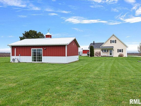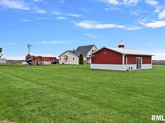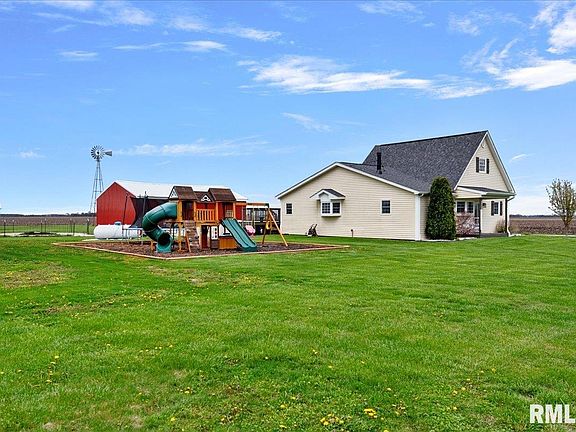 Nestled in the serene farm community and landscape of Loami, IL. is this charming 3.31 acre farm offering a combination of rustic charm and modern amenities. Boasting 4 bedrooms and @ 1/2 bathrooms (main floor bathrooms have been completely redone w/ marble shower by Superior Home Products), this home is located within New Berlin School Dist., ensuring a quality education for your family. Upon arrival you are greeted by the picturesque sight of 2 silos, adding character to the property's facade. Additionally, 2 spacious barns provide ample storage space or potential for various agricultural usage. The front metal Morton building is a versatile space, featuring cabinetry and laminate flooring. This multipurpose area is thoughtfully designed for entertainment for a golf simulator or cozy theatre/ workout room. It comes complete with its own wood stove, electric heating and air conditioning for year round comfort. You'll also love the natural light pouring in from the sliding door and glass overhead door. A highlight of the property is the beautifully refurbished windmill. Inside, the entire house has undergone a stunning transformation, with freshly painted interiors, LVT flooring and modern updates. The kids rooms with their hidden play areas are like no other!! Outside amenities continue with the oversized 2+ car gar, above ground pool, hot tub, fire pit a playground area w/ mulch. New Roof & gutters in '23. New Sump Pump in '24, all new lights/fans, wooden blinds.