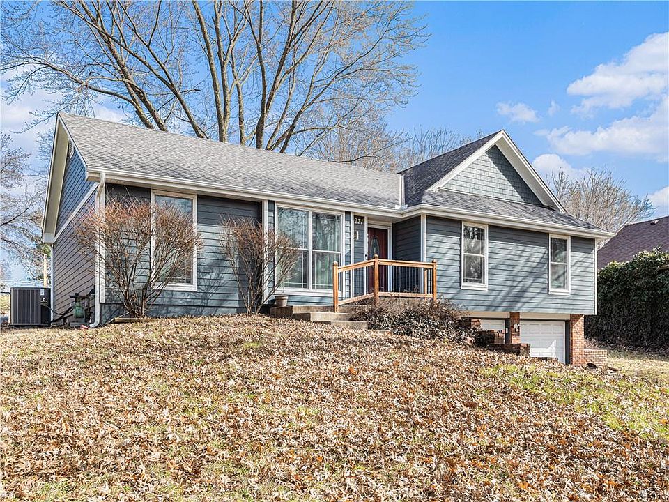 Uncover the charm of this beautiful New Mark Raised Ranch, situated in the heart of Northland in Kansas City! This home offers modern charm and comfort, with three bedrooms, two bathrooms, and a convenient deep two-car garage. Step inside to see a freshly painted interior, new flooring, and a stunning new guest bathroom, all of which create a fresh and inviting ambiance. As you enter, you'll be greeted by a large Great Room with a formal dining area, ideal for hosting guests or enjoying family meals. Find solace in the cozy family room, which provides a peaceful retreat for relaxation. There's plenty of space for both leisure and gatherings, with two living rooms on the main level and a finished recreation room on the lower level, both with fireplaces. Enjoy outdoor living with two decks: one off the kitchen for alfresco dining and another off the master bedroom for quiet mornings or starlit evenings. Nurture the privacy of a fenced backyard, which provides a safe haven for outdoor activities or quiet reflection. This charming raised ranch home offers you the opportunity to live an elevated lifestyle. Take advantage of this opportunity and make your move today!