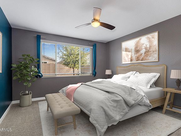 Stylish and spacious 3-bedroom + office (or optional 4th bedroom), 3-bathroom home, perfectly situated on a coveted corner lot. The open-concept design flows effortlessly over elegant tile flooring, creating a bright and inviting atmosphere. The gourmet kitchen is a chef's delight, featuring upgraded cabinets, gas stove, sleek countertops, and a large island- ideal for hosting and gathering. An extra bonus patio off the dining room adds the perfect touch for morning coffee or evening relaxation. The primary suite is your personal escape, boasting a spa-like ensuite with modern finishes. The backyard is equally impressive with a covered patio and turf- perfect for outdoor entertaining or play. Experience Cadence, clubhouse, parks, pool/spa, scenic walking trails & more.