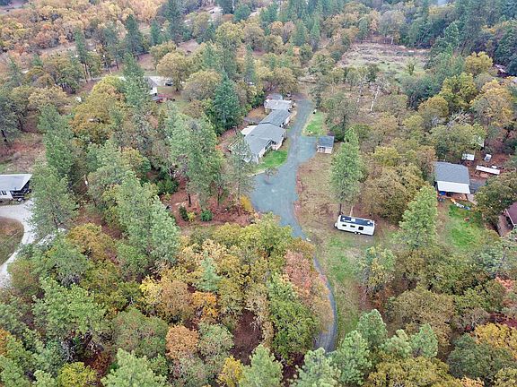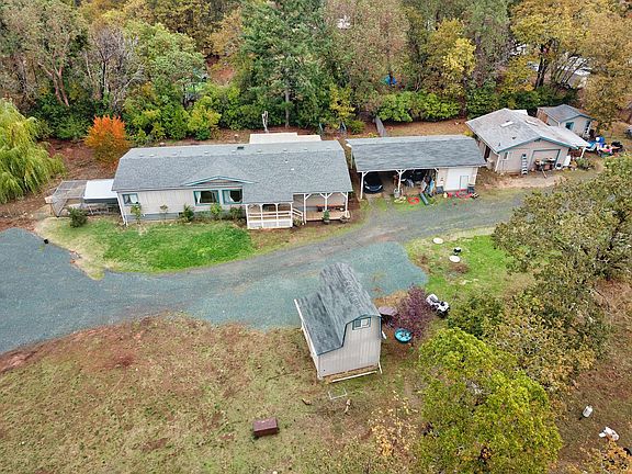 Wonderfully Charming Home with Detached Guest House! Located on a 3.31-acre lot, this 3BR/2BA, 1,848sqft manufactured home (1991) captivates with mature trees, a covered front porch, and sprawling open spaces. Neatly maintained, the interior delights with wood flooring, abundant natural light, an organically flowing floorplan, family room, expansive living room, and a large kitchen featuring white appliances, wood cabinetry, skylight, dishwasher, electric range/oven, pantry, breakfast bar, and a dining area. Sleep easy in the primary bedroom with ample closet space and an attached en suite boasting a soaking tub, separate shower, and a dual sink vanity. Accommodate guests with two additional bedrooms or invite them to rest in the 1BR/1BA guest home. Outdoor parties are a cinch with an enclosed deck, an open deck, and lovely views. Other features: 2-vehicle carport w/storage shed, laundry area, 2-story playhouse, garden shed, 11-miles to Grants Pass, near I-5, and more! Call for a tour!