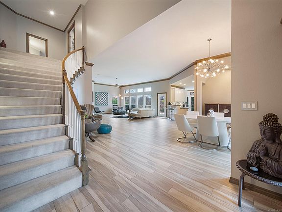 Stunning remodel in prestigious gated community features an amazing, grand living area w/vaulted ceiling & modern high-end glass gas fireplace; spacious gourmet kitchen, private office on 1st floor, 2 master suites w/ jacuzzi tubs, new windows thruout, new low maintenance tile flooring, 2 new H20 tanks, a 175" movie theater w/high lumen HD 3D projector, full commercial quality gym(equipment negotiable) Incredible private backyard patio w/ heated salt water pool backed by greenbelt w/master bedroom access.