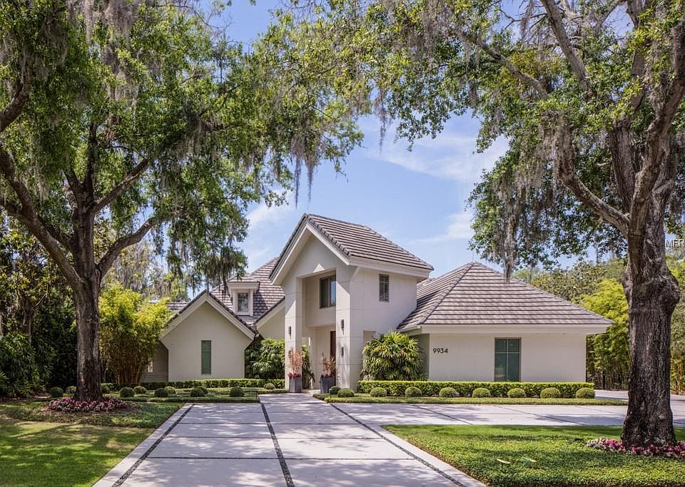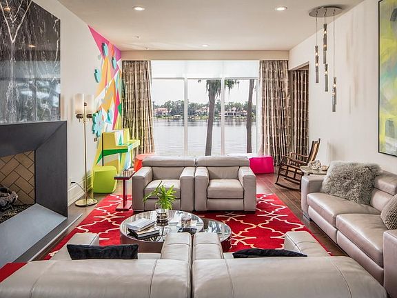 A prime location along the shores of Lake Louise in the renowned Isleworth Golf & Country Club affords captivating views from this exceptional lakefront estate. Offering the best in Florida lakefront living, the striking three-story home boasts extensive modern updates and a new roof completed in 2013. Within the main level, dramatic hardwood floors travel from room to room and direct the eye toward floor-to-ceiling windows along the entire rear wall of the home. From the formal living and dining rooms to the private home office and expansive master suite with an updated master bath, modern finishes and extraordinary lake views can be enjoyed from nearly every room. The kitchen evokes the ultimate in contemporary style with its sleek, white cabinetry, stainless appliances and a unique dual hood vent - all opening to the family room and nearby glass-enclosed wine cellar. Three en-suite bedrooms with commanding lake views share the upper level with a convenient loft that is a perfect space for work, storage or bonus area. On the first floor, a large game room and bar, home theater and additional guest suite create an ideal space for entertaining family and friends. Beyond the covered lanai and large summer kitchen, the grounds feature an open-air pool and spa complemented by a modern fire pit, gardens and a private dock. With more than 160 feet of water frontage, the estate presents panoramic views of lake and sky to be enjoyed all year round.