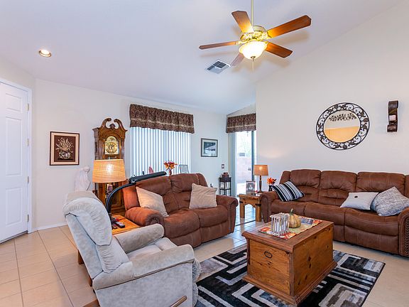 * Enjoy life in Sunflower! Lovely Santa Rita model in this desirable, active-adult community. Beautifully updated/maintained on private corner lot. Interior: Tile & laminate floors thru-out! Great Rm. w/vaulted ceilings, plant shelves; Formal Din.Rm.; Brkfst. nook + Bar; U-shape Kitchen w/newer stainless steel appliances (Refrig. Stays!); Spacious Mstr. suite w/walk in closet, dbl. sinks, ''beautiful updated roll in shower''; 2nd Guest Bdrm. + Den, office or hobby rm.; Laundry rm. (Washer/Dryer stay!); 2 car garage. Exterior: Easy care front/backyard; expansive covered Patio, serene fountain. Sunflower amenities: Pool/Spa, Rec Ctr.; Tennis Cts.; Exercise facilities; walking trail. Note: Den wall cabinet does not convey. Some furniture available via separate bill of sale (list in home).
