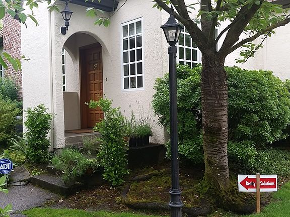 Forest Heights, English Cottage attached home with 2 Master suites, one on main, one upstairs & additional Bonus Rm up. Box Beams in Living & Dining. LR, DR & Kitchen have hardwoods, Bedrooms carpeted, Baths tiled. Wall of windows in Living & Dining, Private & Lovely setting. Walk to Forest Heights Village Center, across street. Parks and walking trails close by. Nicely maintained w/ newer Roof and Furnace. Some Furniture for sale.
