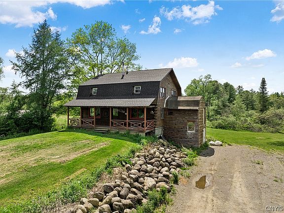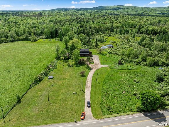 Discover this charming Log Cabin with 3 bedrooms and 2 bathrooms, situated on more than 11 acres in Remsen School District. With a total area of 1,904 square feet, this stunning log cabin is waiting for you to call it home. The open floor plan connects the living spaces seamlessly, making it perfect for entertaining or daily living. Enjoy a cozy kitchen with ample counter space. Upstairs, you'll find three spacious bedrooms and two newly renovated bathrooms. Step outside, breathe in the fresh country air as you take in the serene views of the surrounding nature. Enjoy the privacy and spacious backyard overlooking your pond perfect for relaxing after a long day. Imagine spending your evenings gathered around a crackling fire pit, sharing stories and creating lasting memories with your loved ones.