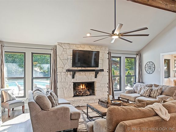 Nice 3BR 2BA home in desirable Sun Meadow. Beautiful pool with newer decking, large backyard ready for summer entertaining. Many upgrades include thermal windows, new kitchen with quartz countertops, and new appliances, exterior paint, and more. Jenks schools.
