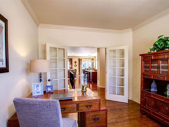 Stunning, Highly Upgraded Stucco Cordera D20 Rancher~Wood Floors~High Ceilings~A/C~Central Vac~Sec Sys~Recirc Pump~Shutters~Gourmet Island Kitchen w/Tall Cabinets, Granite Slab, SS Appl, Gas Range, Dual Dishwasher, Pullouts, Walk-in Pantry~DR walks out to Expanded Patio w/Built-In Seating~Great Rm w/Stone Gas FP~ML Office~ML Laundry~Large MBR w/Luxury 5Pc Bath & Customized Closet~Open 9ft Bsmt incl FR w/Sur Sound & Wet Bar, 2 BRs & Bath, Storage~Oversized, 2.5 Car Garage w/Workshop, Epoxy Floor~Beautifully Landscaped.Immaculate home with upgrades galore. Warm hardwood floors thru most of ML. Open floor plan w/arches, high ceilings, iron railings, lot of light. Gourmet island Kitchen w/breakfast bar, walk-in pantry, dark cabinets w/crown molding, slab granite counters, tumbled marble tile backsplash, & pullouts.