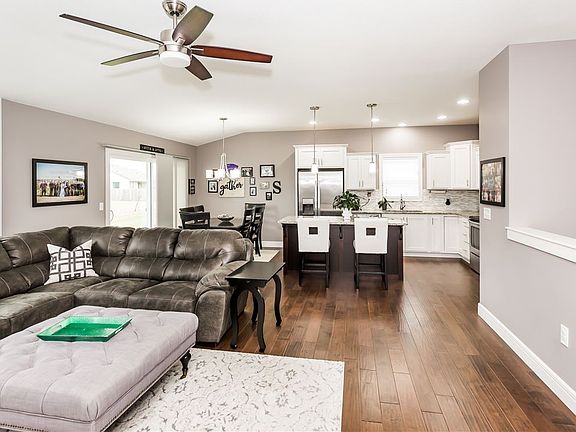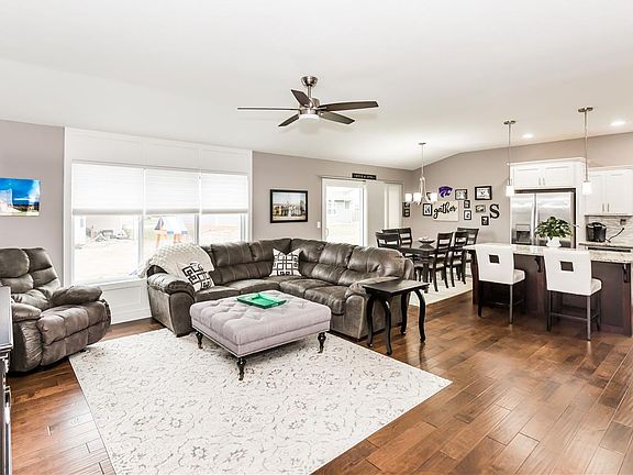 Turn-key Ranch located Just Outside Manhattan City Limits in Whispering Meadows Subdivision offers lower special taxes, and a Community Pool for the Hot Kansas Summers. Modern kitchen complete with white cabinets, Stainless Steel Appliances, Granite Countertops. Huge Entertaining Island/Breakfast Bar for daily or holiday gatherings. Dark Engineered Wood Floor throughout living spaces. Laundry Conveniently located on Main Floor next to Bedrooms. Oversized Master Suite tucked in the back for privacy. En-suite bath complete with double vanity, walk-in shower & walk in Closet. Large Family Room in Basement with additional bathroom and generously sized bedrooms. Plenty of Storage Space in Basement. Backyard offers oversized concrete patio and plenty of green space. Established Yard, Window Treatments and Finished Basement make this Spacious home an Amazing VALUE!