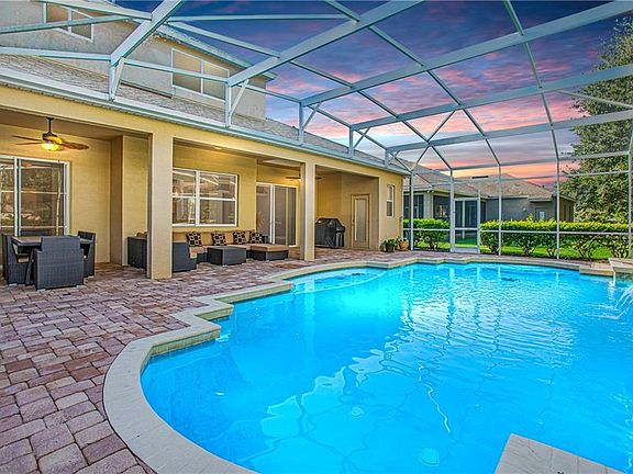 One or more photo(s) has been virtually staged. Gorgeous pool home in a gated, private setting in North Shore at Lake Hart. Ideally situated at the end of a cul-de-sac with beautiful Oak trees and lush landscaping. This two-story beauty has 3,334 square feet with 5 bedrooms, 4 full and 1 half bath and a 3-car garage. Amazing curb appeal with lush landscaping, but the real treasures are the interior finishes and backyard paradise. The floor plan feels bright and open, nice spacious kitchen with lots of countertops and cabinets, stainless steel appliances that include a new dishwasher, and Family Hub French door smart refrigerator, overlooking your family room and your outside oasis. Entertainment will be a breeze with formal living and dining rooms. The first-floor master bedroom is a charming retreat, set in the rear of the home, with a sitting room and has access to the pool - great for those late-night dips to cool off before heading to bed. The master bath features dual sinks, a separate soaking tub with columns, and a shower with beautiful ceramic tile floors. Upstairs you find the four additional bedrooms where the 2nd & 3rd bedroom share a Jack & Jill bathroom, all very large and with great size closets for extra storage. The home has the most perfect outdoor setting to enjoy the Florida weather with its spacious covered and screened lanai and a sparkling pool plus a full pool bathroom. Beautiful landscaping surrounds the area and gives a feeling of privacy. Two new AC Trane units (18 SEER, variable speed with thermostats that can be controlled remotely) and new whole interior paint. You will have pride in ownership and love coming home every day. Location is perfect minutes to golf course and clubhouse. NorthShore community is the perfect place to live and play with amenities that include a fantastic golf course, clubhouse, fitness center, lakefront park and pier, tennis courts, basketball courts, walking trails, elementary school, and so much more. Close to Medical City including Orlando VA and UCF College of Medicine, United States Tennis Association Headquarters, and Lake Nona Performance Club, a state-of-the-art fitness and well-being center coming July 2021. Great family home, come and make this yours today. A one-year home warranty is provided.