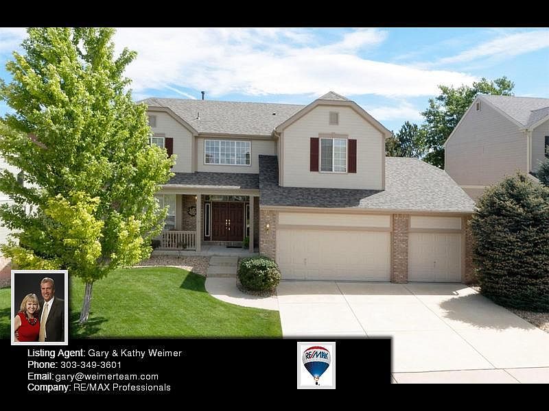 Great Sanford 2-story "Stanhope" with expanded, added Study/Den on main level! Private location ... no homes behind!! 3-car garage! 4 true bedrms + open Loft upstairs! Master Suite w/ coffered ceiling, twin walk-in closets, luxurious 5-piece Master bath! Covered front porch! Brand new roof! New exterior paint! Private back yard, easy maintenance! Hardwoods thru Kit, Dining, Nook & Entry! Tall Kitchen cabs! This home has been loved ... and it shows! Not a weed in the grass, not a speck of dust anywhere! No kids, no pets! Pristine condition. Mountain views from the covered front porch! Near Cherry Hills Community Church! Listing Agent: Gary Weimer Company: RE/MAX PROFESSIONALS Phone: 303-349-3601 Email: gary@weimerteam.com