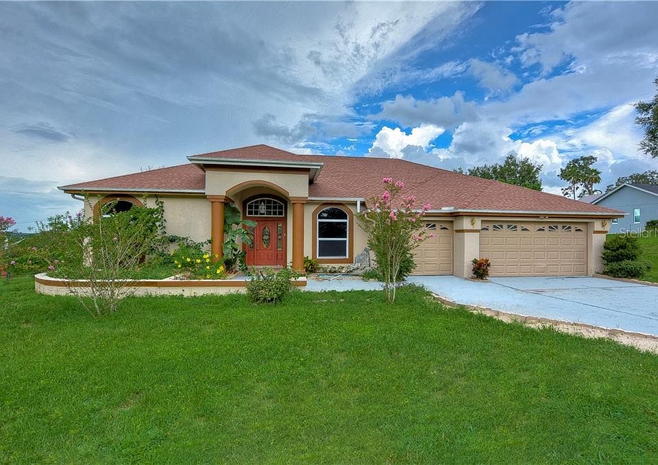 This Gorgeous 4/3/3 Car Garage Home Sitting On 1.26 Acre Land I a Dead End Street. "MOVE IN READY AND ABLE TO CLOSE QUICKLY". Close to the Shopping mall and Florida Hospital. The Home has Formal Family room with a wood burning fire place, , Dining areas, Living room and office room. The Upgraded Island Kitchen Offers Granite Counter tops and Solid Wood Cabinets with Custom molding. The Living area and family Room Opens to the outdoor Large Kitchen with Gas Range and Opens to a Large Screened Lanai. This House Offers, custom made Vertical blinds and Granite Flooring throughout the house except in the bed rooms, Living room, and office room. All Bed rooms and Office room have Laminated Wood Flooring. New Roof (03/2018), New Interior and Exterior Paint (08/2019). Huge Back Yard Offers lots of rooms for Play, Gardening, and lots of Family Fun. Upgraded Utility, shed give more space for storage.. Inside Laundry and 3 Car Garage with Walking Attic Space and a Pull-Down ladder. Front windows and office windows are tinted. Walking Closet in a spacious master bed room. No CDD, No HOA Fees.Well water and water softner