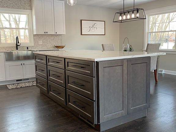 Completely renovated 4 bedroom, 3 bath 2,992 square foot ranch home in Munster, IN with award winning schools. This house is on one of the best lots in Munster with an easement behind the home and easy access to the bike path and Centennial Park. The backyard is your own serene and quiet oasis. Everything is brand new in this house – NEW windows, NEW gutters, NEW high-efficiency furnace, NEW REAL hardwood floors throughout the entire main floor, NEW shaker style wood trim throughout, NEW interior drain tile. Open concept floor plan with NEW kitchen that includes 42 inch soft close cabinetry, oversize kitchen island with storage on both sides and enough room to seat 5, new stainless steel appliances including a GE French-door refrigerator, pot filler, quartz countertops, large farmhouse sink, Carrera marble backsplash that goes to the ceiling, and black matte fixtures. New fireplace in living room with shiplap planking surround that is pre-wired for a wall-mounted TV and wood beam mantel. Large master bedroom with 2 large closets and custom closet organizers. Spa-like master bathroom that includes a plank wood feature wall, freestanding tub, large shower, and dual vanity sinks. The lower level includes a HUGE 13ft x 50ft family room/entertainment area with a plank wood wall that is pre-wired for a wall mounted TV, large built-in cabinetry with quartz countertop and an under-counter refrigerator, large bedroom with NEW egress window and double closet, and full 3 piece bathroom. You will love doing laundry in the extra large laundry room with built in cabinetry, quartz countertops, large undermount stainless steel sink and enough room to do crafts. Attention paid to details. This is a must see! Move right in! Just 30 miles from downtown Chicago. Realtors welcome. Call 219-617-0975 for a private showing.