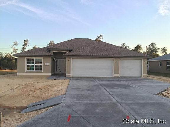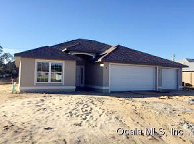 NEW CONSTRUCTION HOME!! 3 Bedrooms, 2 Full Baths, with 3-car garage plus covered rear patio!! 1768 living sq ft, split bedroom plan, this model offers a warm and inviting, fully open concept. Upgraded features include granite counter tops in the kitchen & baths, stainless steel appliances, 5-1/4" baseboards throughout, smart panel with centrally wired cable and Internet, ceiling fans in all bedrooms and great room. Master bedroom with dual-sinks, spacious walk-in closet, and tile shower w/bench seat. Other features include tile floors in all wet areas, inside laundry room, vaulted ceiling, HUGE 3-car garage! 1-year builder warranty included. Great school district, underground utilities including County water & sewer, excellent location in SW Ocala gated community of Meadow Glenn. BUILDER INCENTIVE AVAILABLE! Call for details!!