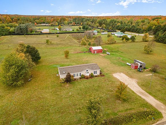 Welcome to this idyllic retreat nestled on a spacious 4.8 acres in the heart of Frederic, MI. With dimensions stretching 644x326, this expanse offers both privacy and potential. Equestrian Dream & Hobby Farm Potential: Boasting three distinct pastures lined with dependable electric fencing, and an established horse barn. Whether you're an equestrian enthusiast or looking for a space to cultivate your hobby farm, this property checks the boxes. A modern 2-year-old shed stands proudly in the dog training pasture, adding utility and opportunity for various purposes. Adorned with numerous wild cherry trees, the land is as fruitful as it is vast. Comfortable & Contemporary Living with this ranch style home. Featuring 3 bedrooms and 2 full baths, it's designed for both function & comfort. Revel in the primary suite complete with a walk-in closet. The inviting open floor plan is accentuated by a vaulted ceiling, double sets of elegant French doors, and vinyl windows that flood the space with natural light. Vinyl siding gives the exterior a clean and contemporary finish. The peace of mind is ensured with a newer water heater and an updated roof. The home stands tall on a 5 ft poured concrete crawl space. Plus, the distinct wood burning system offers an alternative heating method, perfect for cozy Michigan winters. Though you'll enjoy serene seclusion, the expressway is just a 5-minute drive away. Additionally, Grayling and Gaylord are reachable within a short 15-minute drive, giving you access to local amenities without compromising on tranquility. Don't miss the chance to call this Frederic gem your own! 2023-10-11