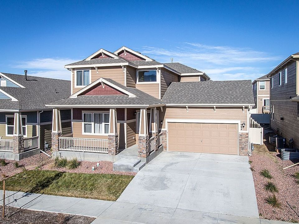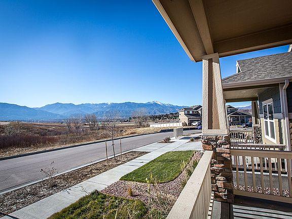 Beautiful home located in Springs Creek* The front patio opens up with unobstructed views of Pikes Peak and the Rockies* Attached 2 car garage* Walking inside you have wood floors throughout the entry, formal Dining room, and Kitchen* The Kitchen has desirable Granite countertops and an island with breakfast bar seating* Living room has an open concept with the Kitchen as well* 1/2 bath and laundry are conveniently located on the main floor too* Upstairs are 3 bedrooms* The master adjoins to a 5 piece bath* The master bath has double vanity, free standing shower, and tub* There is an additional full bath upstairs too* The basement is finished with 1 bedroom, 1 full bathroom, wet bar, and entertainment system.