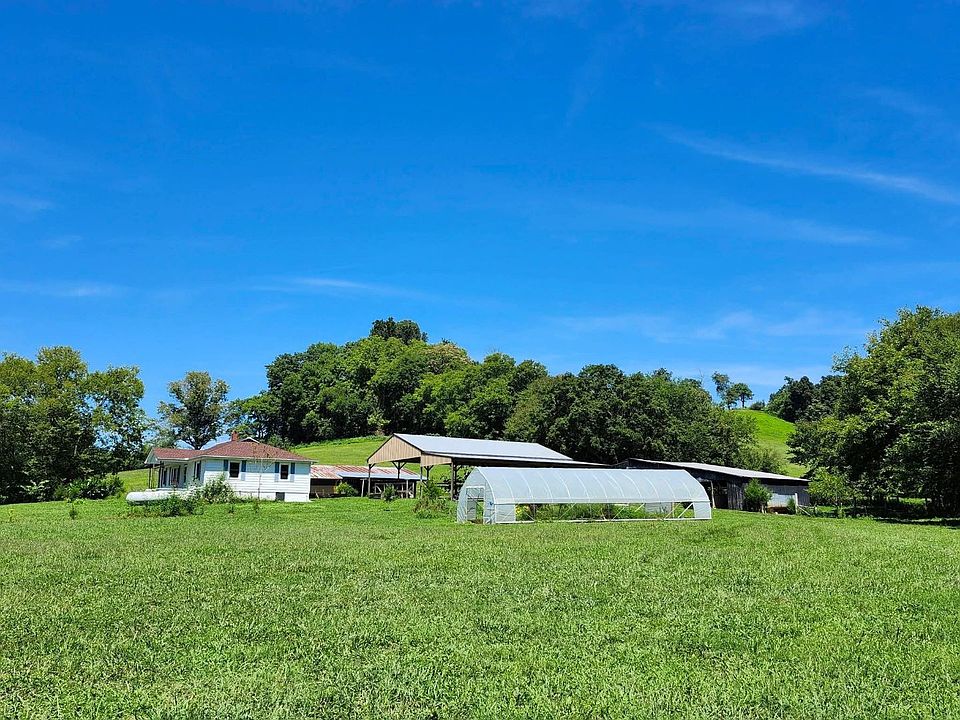The farm is fully fenced and cross-fenced, featuring productive pastures, hay fields, wooded acreage, and a peaceful pond. Multiple barns provide exceptional utility, including a covered 40x60 riding arena with attached 20x60 shed, ideal for livestock, equipment, or oversized stalls. A natural spring, wet-weather creek, established gardens, and a 16x48 high-tunnel greenhouse support true farm-to-table living.
