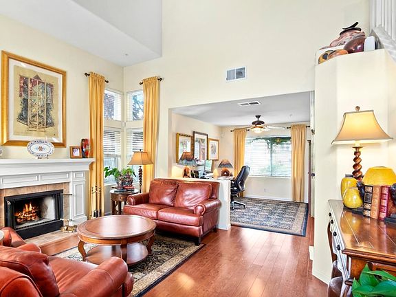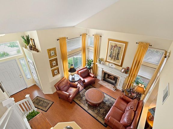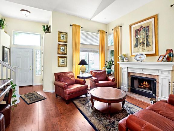 Bright and Immaculate describes this 3 Bedroom / 2.5 Bath home situated around lush landscaping; The entry wood floor are enhanced with the living room fireplace mantle and elegant staircase; Updated kitchen includes: granite counter tops, canned lights, ceiling fan, appliances and area for breakfast table; dining area looks into the beautiful backyard; all window coverings are included; 2 car garage is sheet rocked and painted; master bathroom has double sink; tile bathroom floors; oak cabinets through-out; Hang your towels and move-in!!