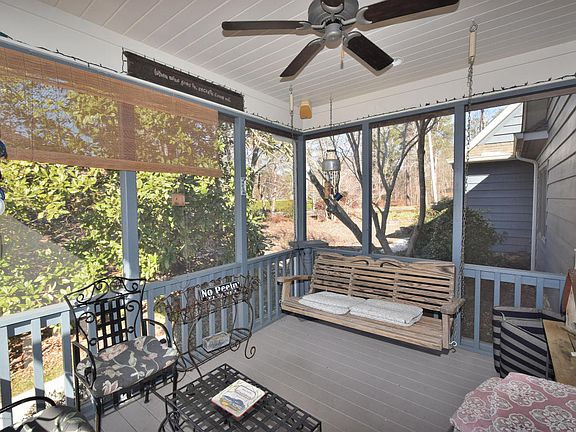 - Exterior: Covered Patio, Gutters, Patio, Porch, Screen Porch, Outbuilding(s), Sprinkler, Wooded