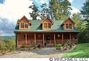 -Private location with beautiful mountain views from this newer log home. Open floor plan , vaulted ceilings, stone fplc, large cvrd front porch and deck. Southland log home with master on main level. Home is currently unfurnished, and a short sale!!