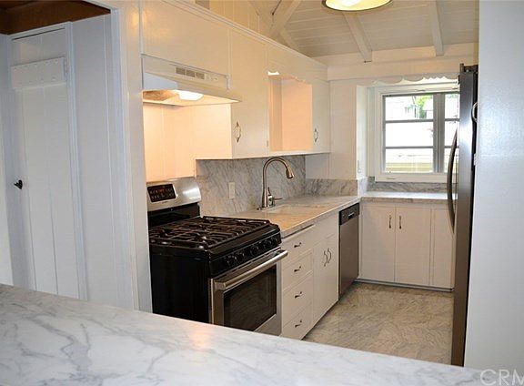 Freshly upgraded ocean view upper unit, 2 bedrooms, 1 bath. All new windows, all new window blinds. Located in the best neighborhood, Laguna Village. Walk everywhere from here! Hardwood floors, marble floors, marble kitchen, marble bathroom. Stainless appliances in beautiful kitchen, dishwasher included. Open beam high ceilings, ceiling fans in 3 rooms. Fireplace in living room, marble bar counter from kitchen to living area. Second smaller bedroom could be used as an office. Gas range, beautiful lighting, big closet in master bedroom. All light and bright, windows galore, all new window blinds. Private carport and private single car garage, with private laundry hookups in garage.