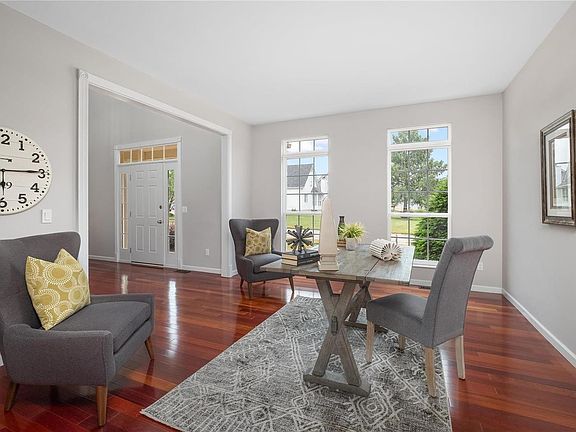 Timeless Elegance on the Fairways of Turtle Creek. Brazilian wood floors, incredible natural light and a 2 story foyer will draw you into this extraordinary home. Space for a home office, a custom fireplace in the family room, brand new windows throughout and your own culinary delight in this spacious kitchen will immediately win your heart. Boasting classic charm with high end updates this kitchen has SS appliances, 42 inch cabinets and a large island for entertaining; you can choose eat in kitchen or an elegant dining space. Main floor laundry and TWO half baths round out this expansive main level. The primary suite has vaulted ceilings, a large bath and walk in closets make this a perfect retreat. The additional 3 beds are spacious and they share a designer updated bath. The walk out lower level is a large finished space with wall to wall LVP floors and is a versatile space for the next owner. Turtle Creek lifestyle includes golf, swim, tennis, and block parties.