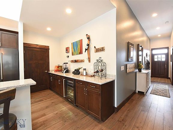 Spectacular single level home in The Knolls at Hillcrest, a 55+ active adult lifestyle community in the heart of Bozeman. Backing to Josephine Park, the trail network ties into Peet's Hill, and downtown Bozeman. Mountain modern finishes with engineered wood flooring throughout, knotty alder doors, trim, and custom cabinets. Granite countertops throughout. Bright and airy great room and kitchen, with vaulted ceilings and striking clerestory dormer. Huge kitchen with black stainless Kitchenaid appliances, and wine fridge. Master bedroom at opposite end of house from guest bedroom and den, for privacy. Master bathroom features a curbless, walk-in tiled shower, walk-in closet, and additional closet. Bridger Views from the Master Bedroom, and private side yard patio area. Come see this beautiful, nearly new home, today!