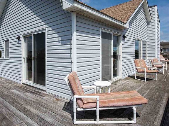 Oh, the possibilities! Situated on a huge lot across from the Atlantic Ocean and adjacent to the beach access, this property is what buyers are looking for. The expansive top deck offers beautiful views and plenty of space to enjoy the Carolina sunshine. Inside, the top floor is enhanced by lots of natural light and the open concept living/dining/kitchen layout with cathedral ceilings accented by wood beams for architectural appeal. A cozy fireplace sits amid three sets of glass sliders bringing the outside in, for the chillier seasons. Off the functional kitchen with its breakfast bar/island is a screened porch for even more year round enjoyment. On the midlevel, the bedrooms are spacious, some with covered porch access. There is another family room den area that could easily convert to a game room. This spacious, conveniently situated property has the potential to be a favorite for renters, as well as a comfortable second home.