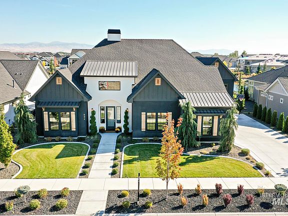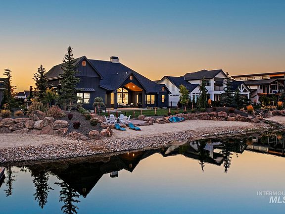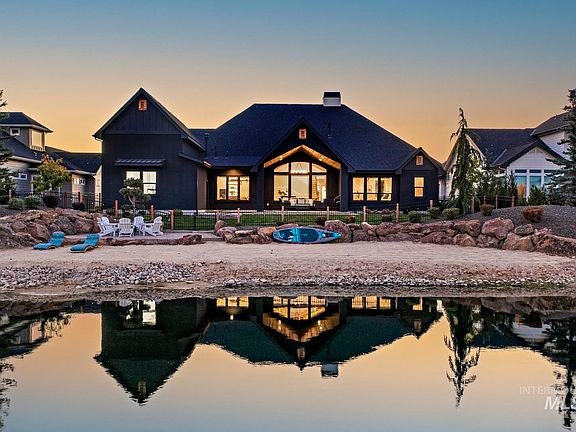 Escape to your ultimate waterfront paradise in Eagle's highly coveted Legacy community. Located on one the most premier beach front lots in the community, this 2020 Parade home offers luxury finishes throughout. Stunning grand entry takes you to the great room with soaring vaulted ceilings, natural wood beams and shiplap accents. Open gourmet kitchen offers oversized quartz island, top-of-the-line Thermador appliance package, massive pantry with prep space and beverage fridge, and so much more! Master suite offers sitting room, patio access, luxurious ensuite with walk-in tile shower, freestanding tub, and oversized walk-in closet. Full 45" RV Garage. East facing backyard offers ample shade and stunning beach views. Interior radiates beautiful finishes throughout this gorgeous home!