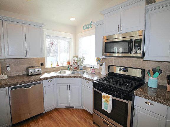 Now available in Middleton's Powder River Subdivision this home will catch a Buyer's attention from the stainless appliances, granite counters and painted cabinets in the kitchen to the views from the deck and fully vinyl fenced back yard. Huge covered porch up front makes way to an inviting open floor plan with expansive hardwood flooring and vaulted ceilings. Bonus Room on the Main level. Fourth bedroom on main can double as a great office area! Includes 10x10 storage shed. No direct back neighbors at this time other than the wildlife along the waterway easement. Amazing choice of colors and upgrades throughout the home with ample sized rooms and natural light! Master bath has both a soaking tub with a view and stand alone shower. Clean and ready for a Buyer looking for more than the average home.