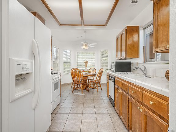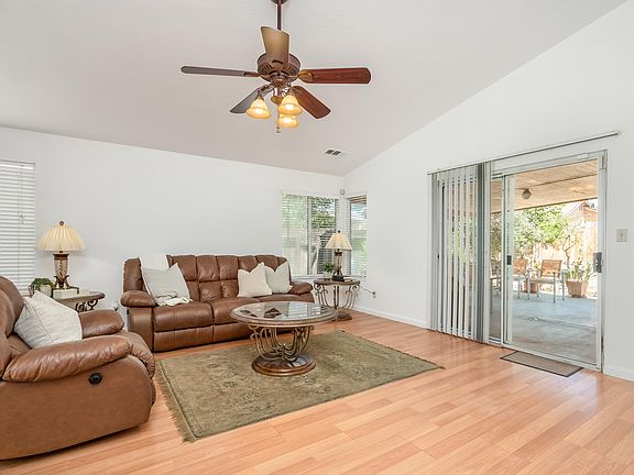Walking up to 994 Sacramento, bountiful rose bushes greet any guest arriving at your new home. Once inside, a spacious entryway guides you into the living room designed with laminate flooring that is found throughout the house. The living room fills with an abundance of light from the windows that overlook the patio and into the backyard. A fireplace is seated at the focal point of the living room adding to the cozy feel of the home. Freshly painted walls met with vaulted ceilings create an inviting and heightened feel to the space. Beyond the living room is the galley kitchen that is equipped with white appliances and an eat-in area that overlooks the front yard. On the opposite side of the home sits all three bedrooms and bathrooms. The master bedroom at the back of the home is outfitted with laminate flooring as well, along with dual closets, vaulted ceilings, and owners bath. The sun filled backyard offers a covered patio, and fruit trees for all to enjoy.