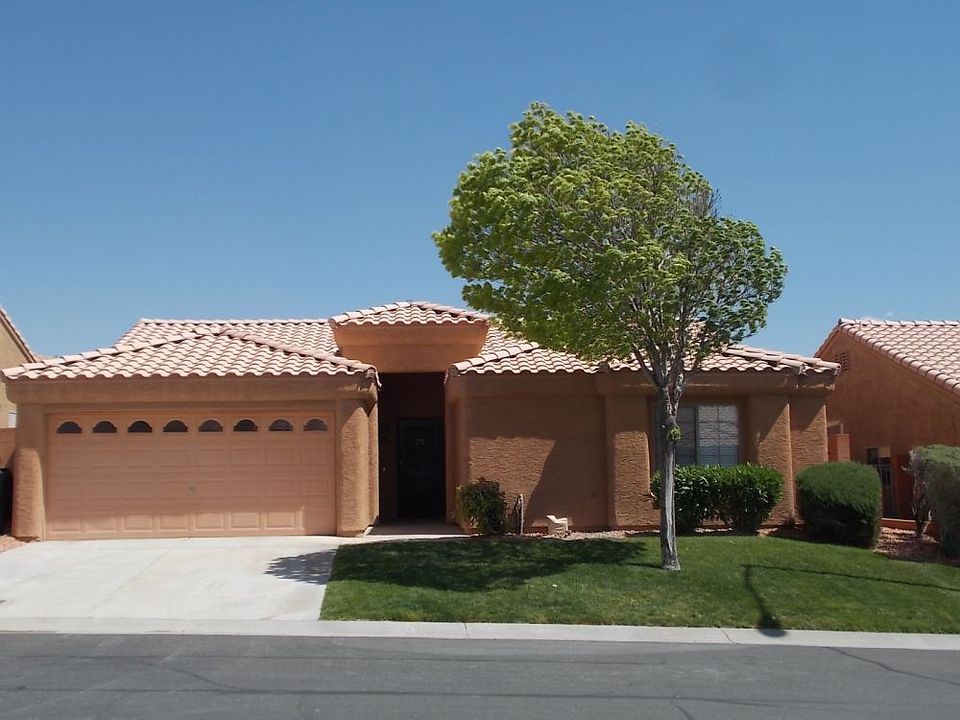 JUST LIKE BUYING A NEW HOME.....REMODELED April 2015. New Granite Countertops in the kitchen....expanded counter top surface area when remodeled. New 18 x 18 Tiled floors in the kitchen, dining area and entryway. New Carpeting throughout the living room and all bedrooms. New Blinds throughout the entire home. New ceilings fans and lighting in all rooms. New Refrigerator and dishwasher. Vaulted ceilings are found from the entryway, living room, dining area, kitchen and master bedroom. Additional pantry in the kitchen along with all the extra cabinetry. Large Covered back patio extends the entire length of the home and has an eastern orientation. Located at the end of a cul-de-sac with views of the desert bluffs and mesas from the backyard as well as the frontyard. Entire back patio is covered with tile. Located in a gated community with amazing "perks" as part of the HOA....swimming pool, hot tub/spa, workout facility, tennis courts and sand volleyball courts.